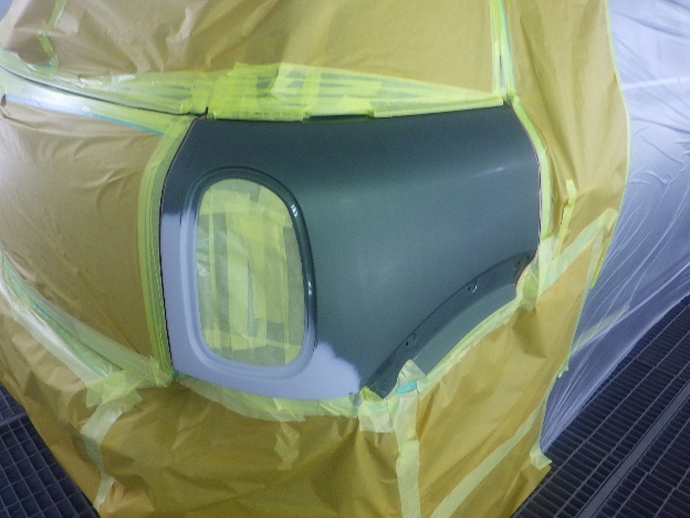 パテ乾燥の後、サンディング作業、新品部品の仮合せ作業を行いました。
