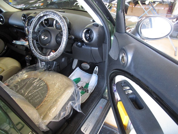 入庫確認作業の後、シートカバー、ハンドルカバーの取り付け作業を行いました。