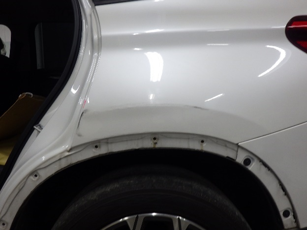 仮合わせ作業の後、損傷のあるリヤフェンダーの板金作業を行う為、