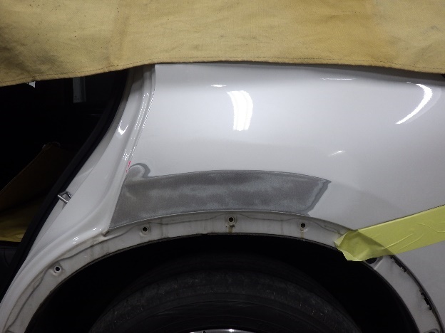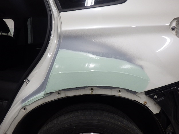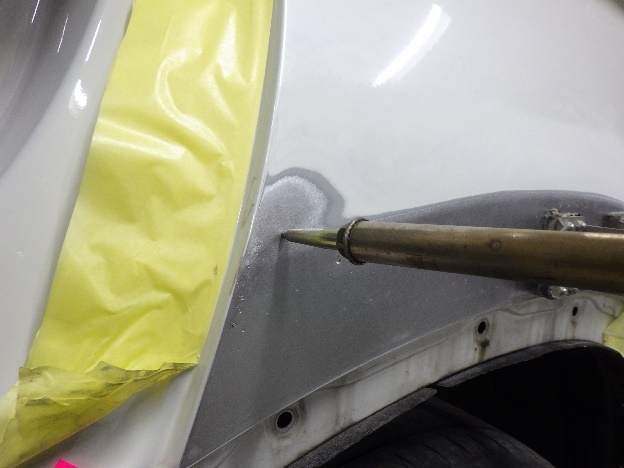 板金を行った箇所へ、パテ付け作業を行いました。