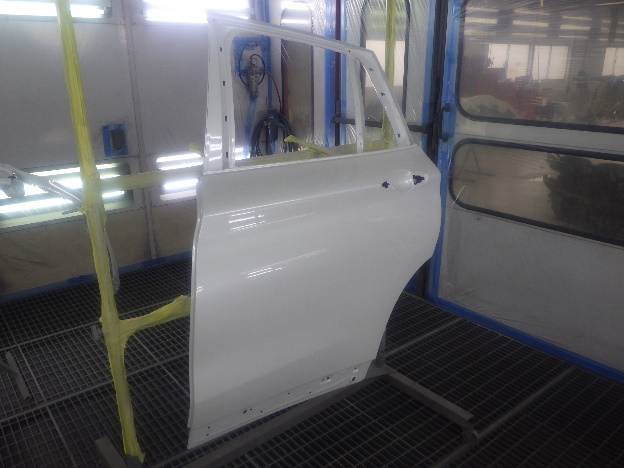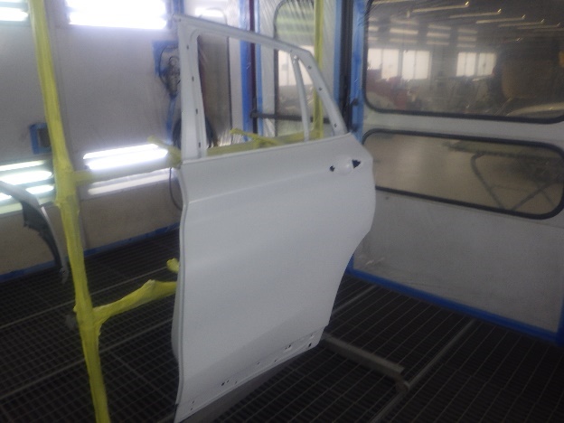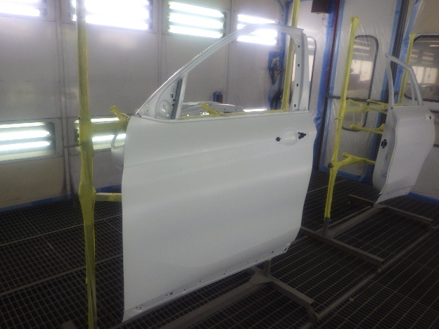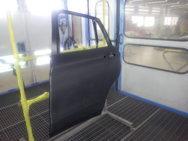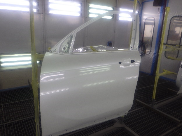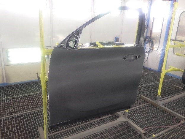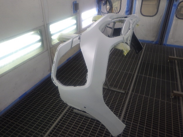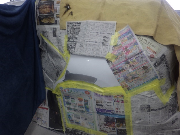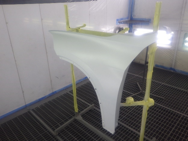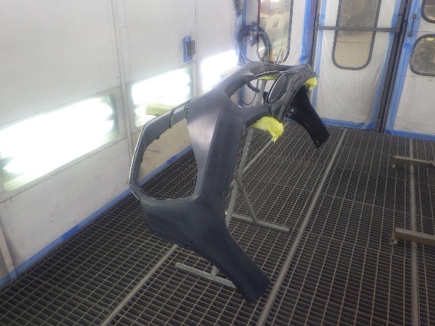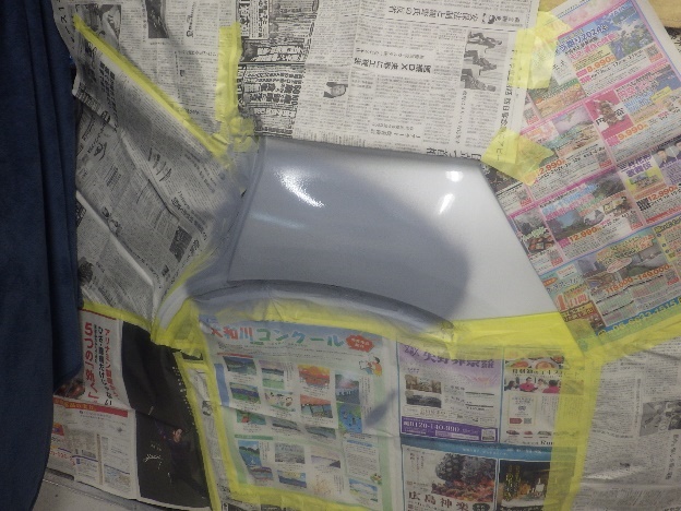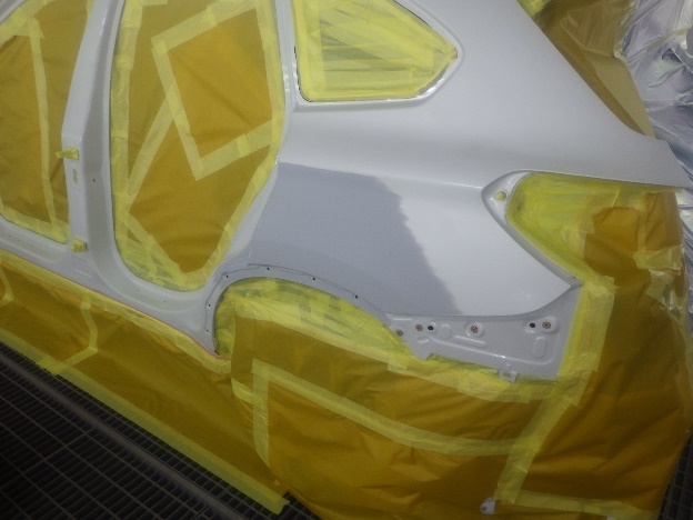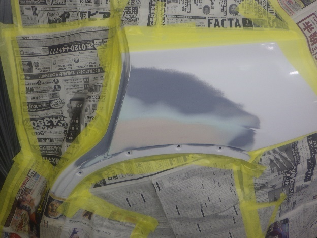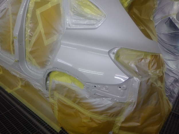 乾燥後、塗装準備(足付け、紙貼り、脱脂、エアブロー)を行ない、
