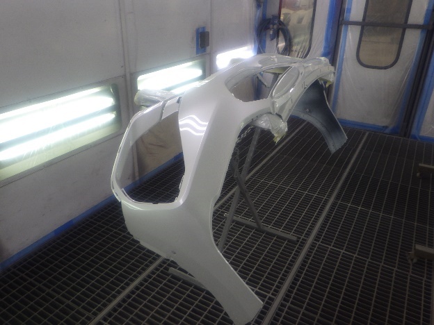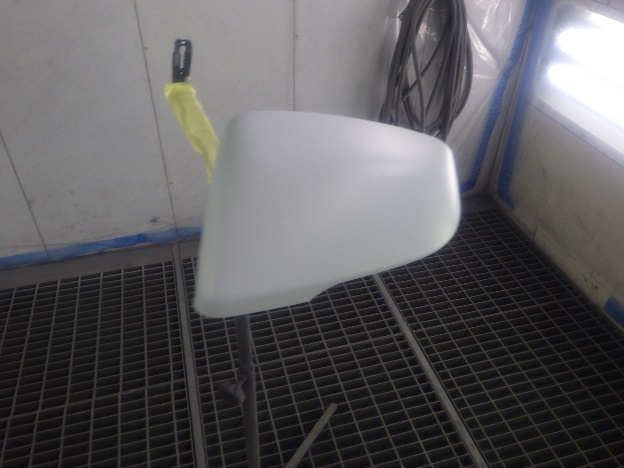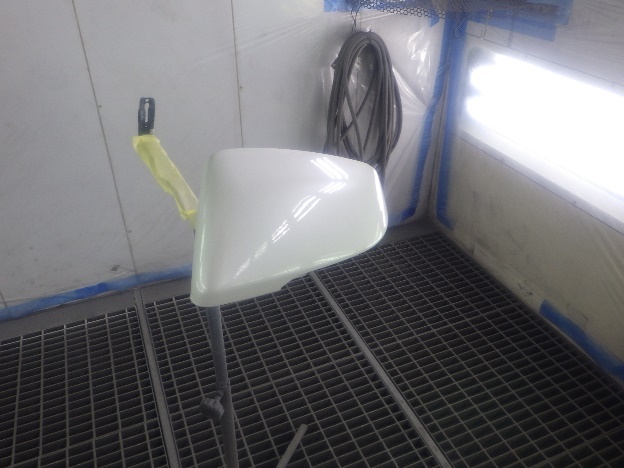 その後、ベースコート(白)、トップコート(クリヤー)の順に、塗装作業を行いました。