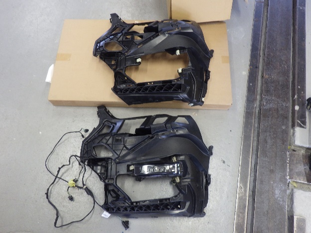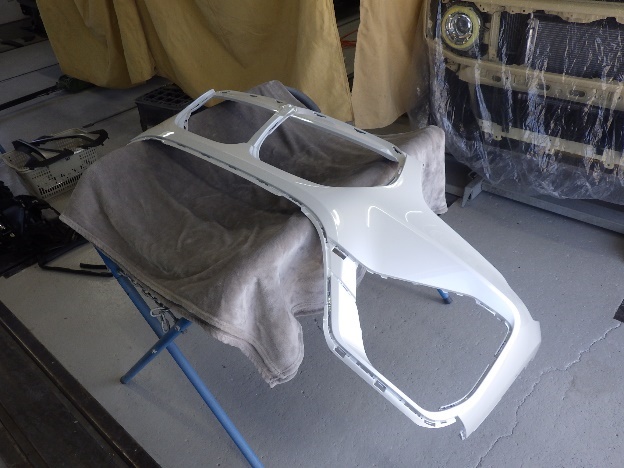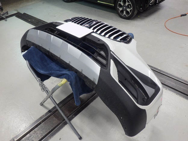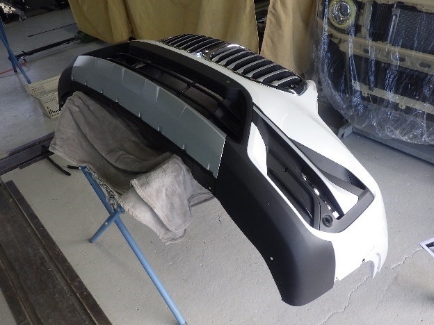 乾燥後、フロントバンパーに構成部品を取り付け、組み立て作業を行いました。