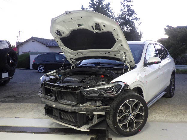 内部の損傷状況を確認した後、損傷のあるフロントバンパーから、