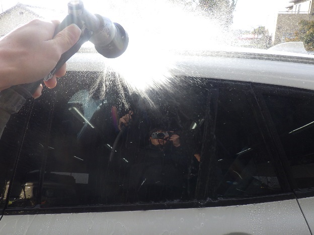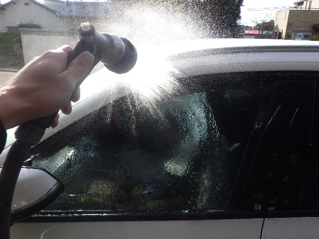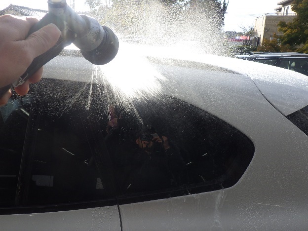 磨き作業の後、交換、脱着を行った各箇所の、雨漏れ確認作業を行いました。