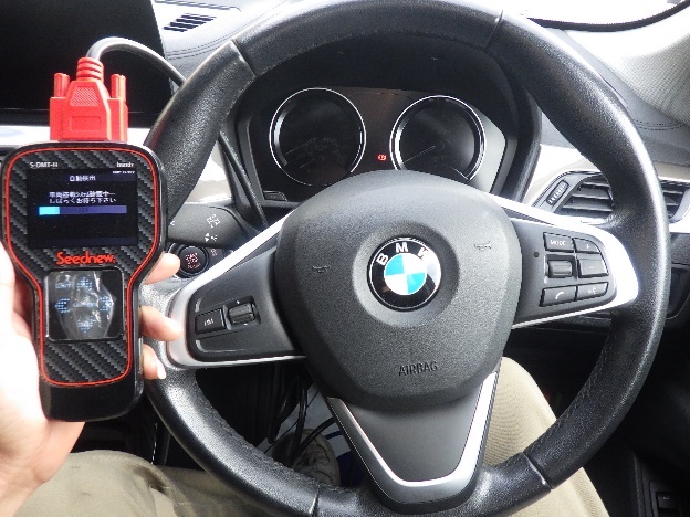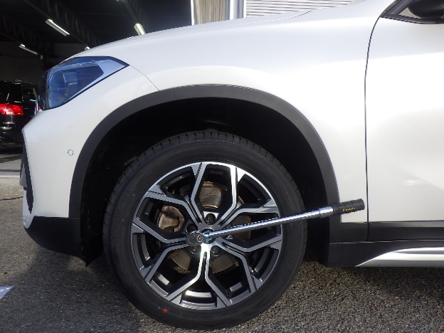タイヤの交換作業の後、診断機による故障コードの消し込み作業、光軸調整、