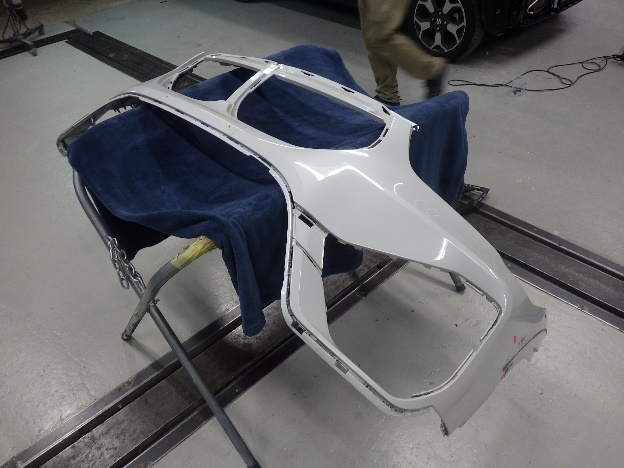 分解作業の後、リヤドア、フロントドア、フロントフェンダー、フロントバンパーの順に、