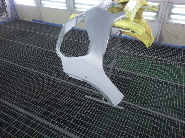 ベースコート(シルバー)、トップコート(クリアー)の順に塗装作業を行いました。