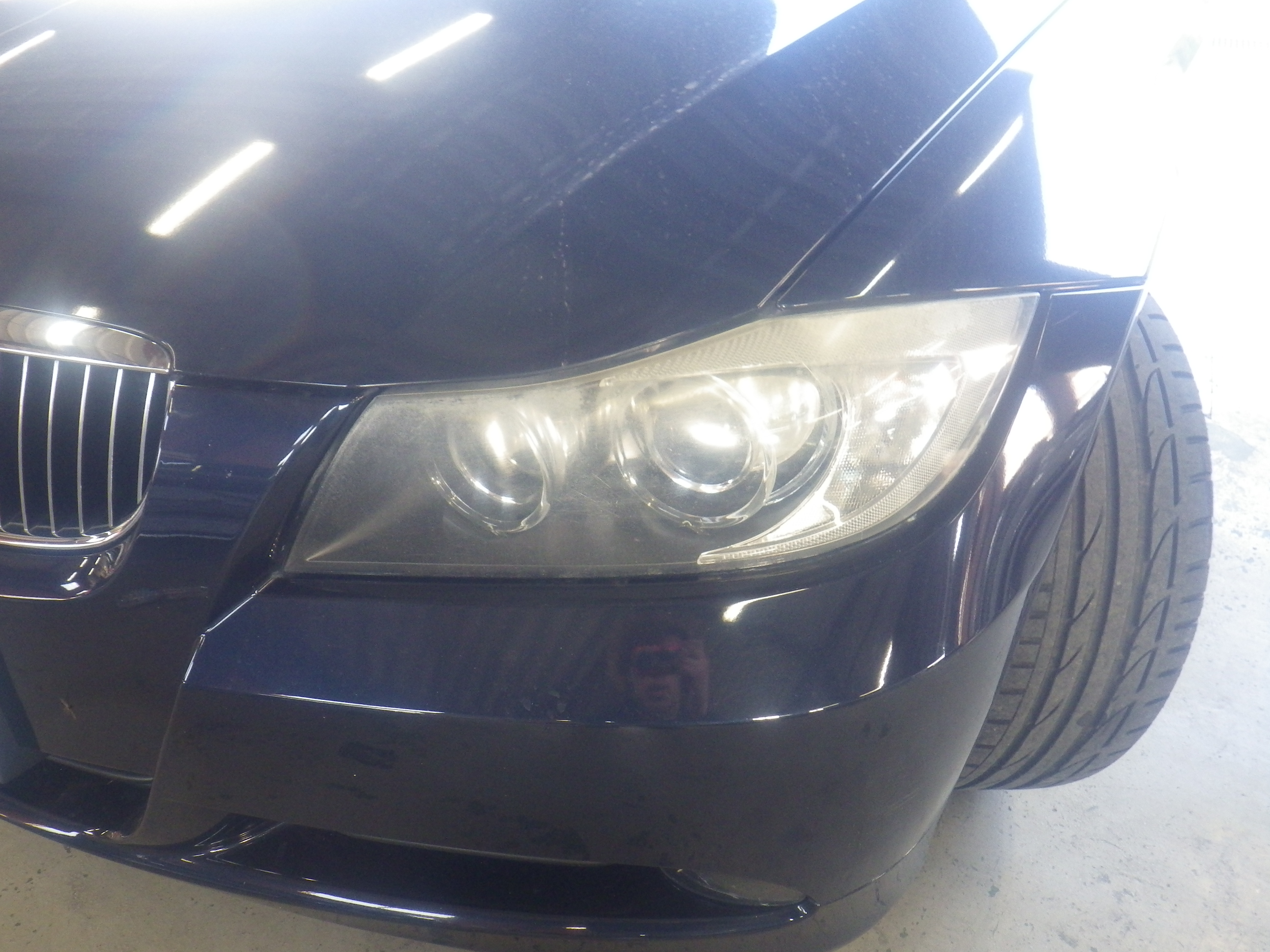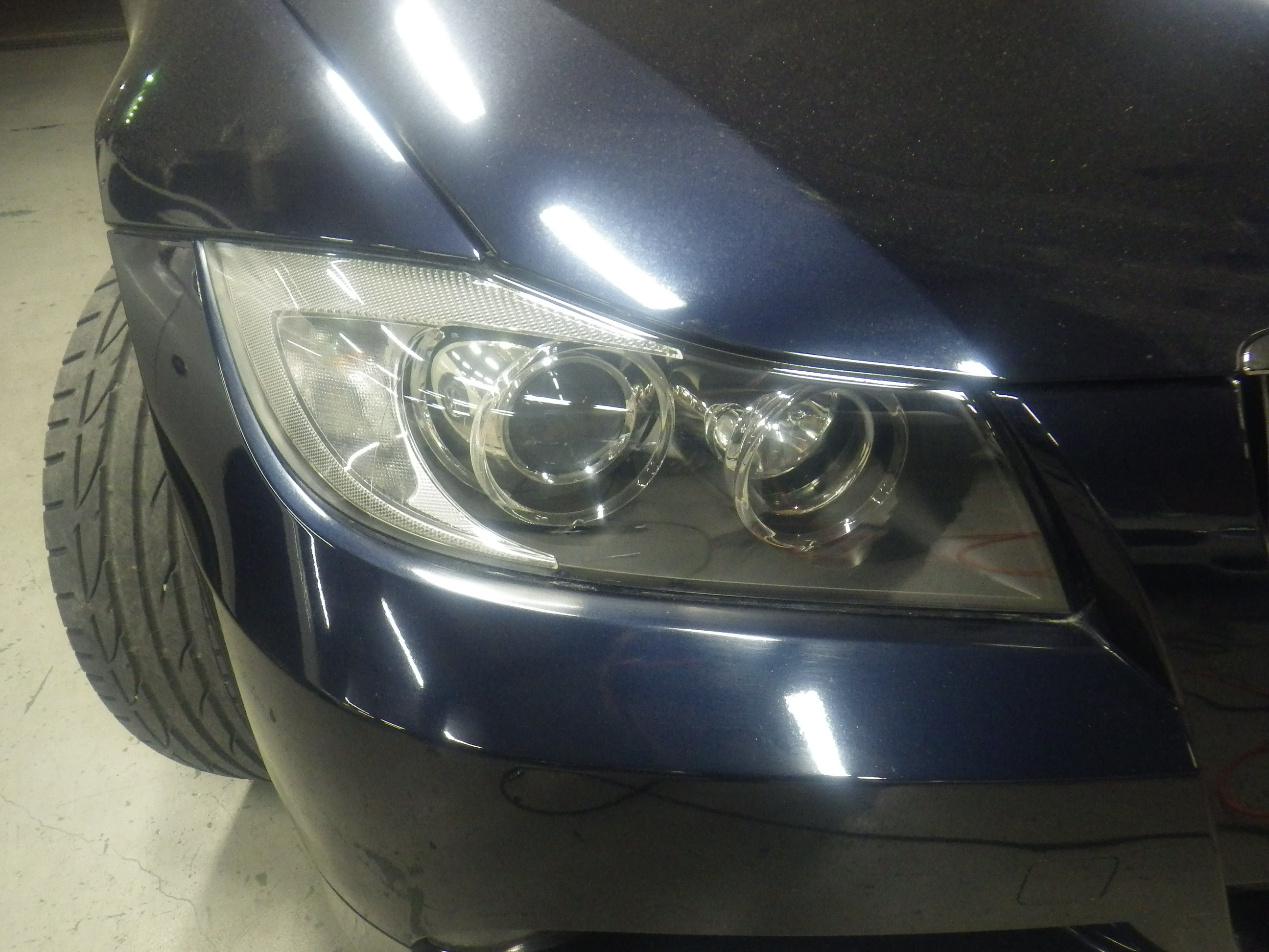 【板金塗装】兵庫県三木市、H様、2006y、BMW、323i、 E90、ヘッドライトクリアコート修理のレポートです!御入庫有難うございましたm(__)m