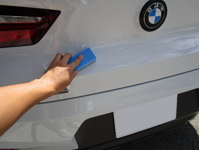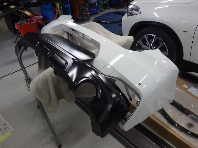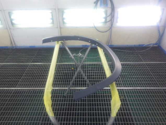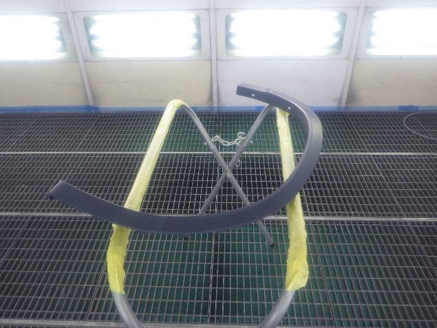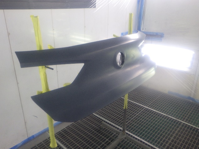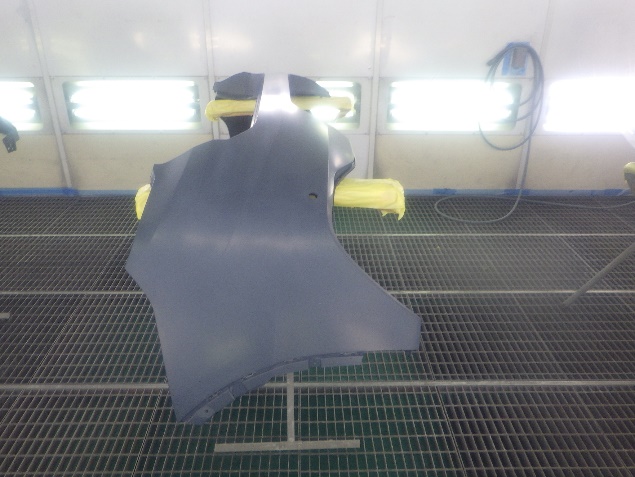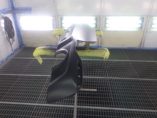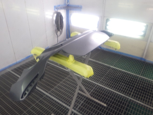 バンパー、ゲートパネル、ゲートカバーの足付け、脱脂、エアブローを行い、