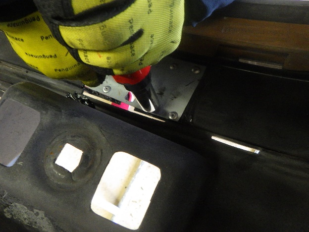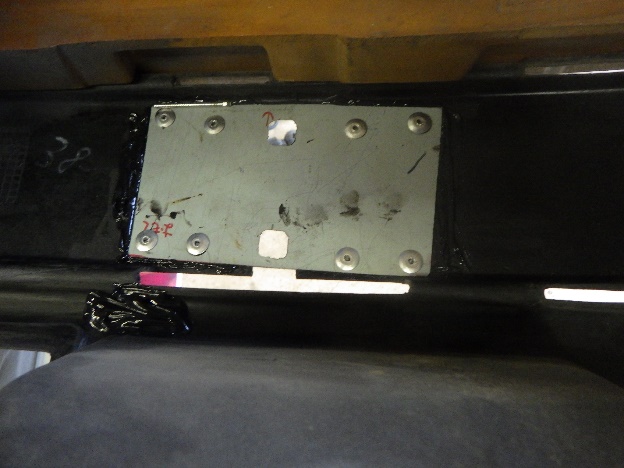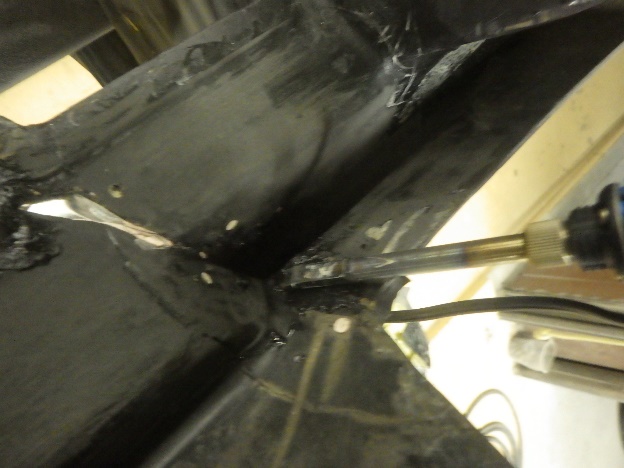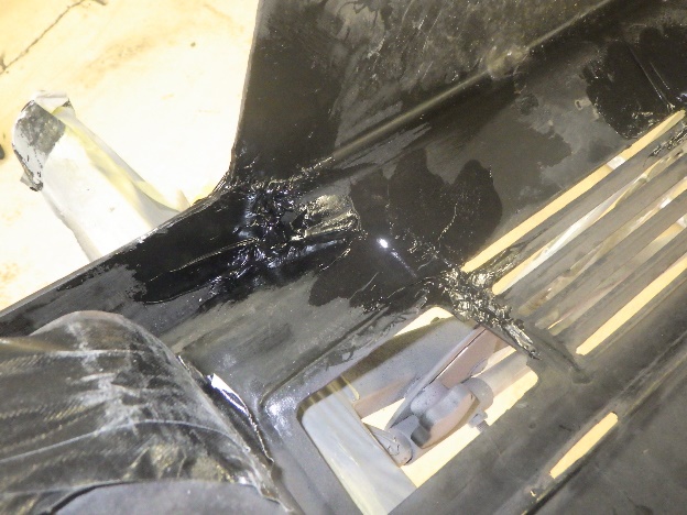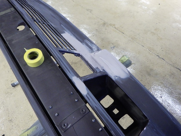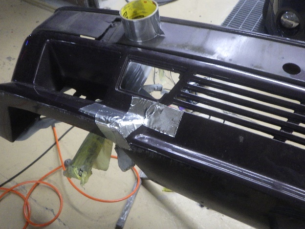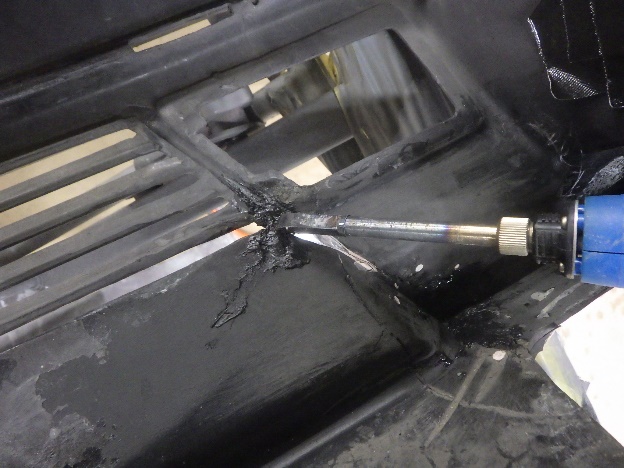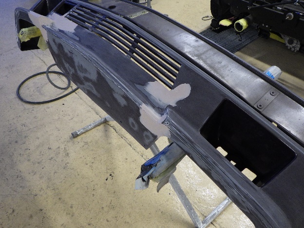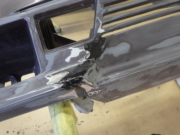 ボンド乾燥の後、足付け作業、脱脂作業、エアブローを行い、パテ付け作業を行いました。