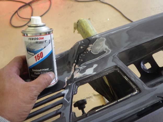密着性向上の為、プライマーの塗装作業を行い、サフェーサーの塗装作業を行いました。