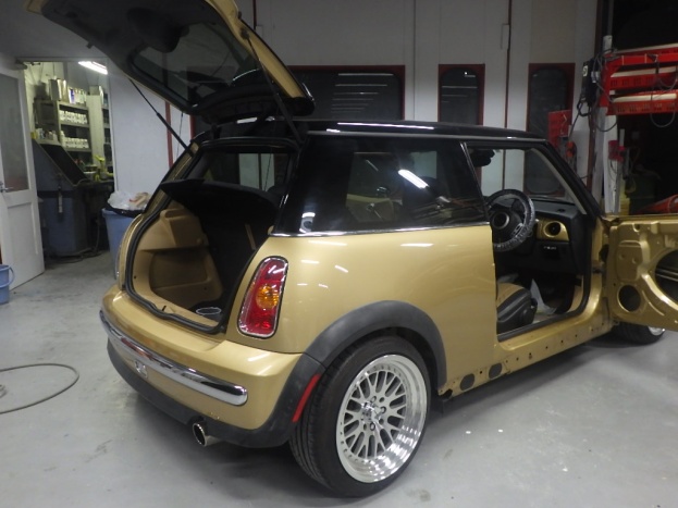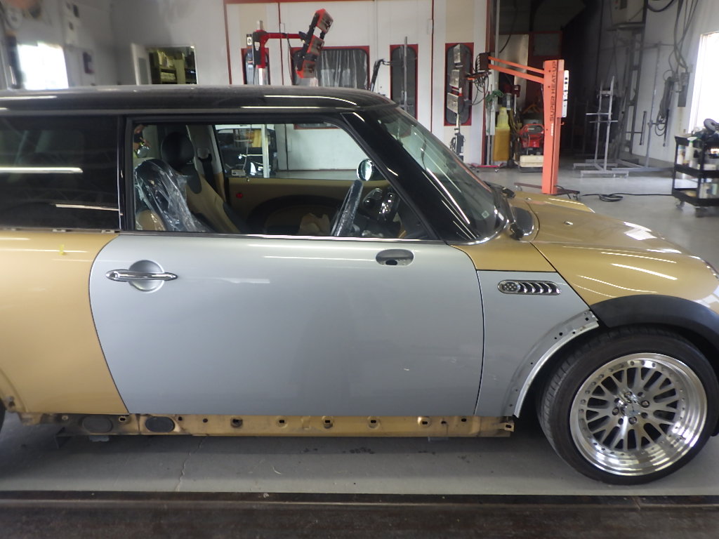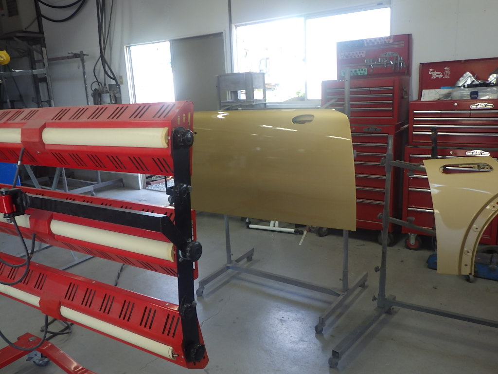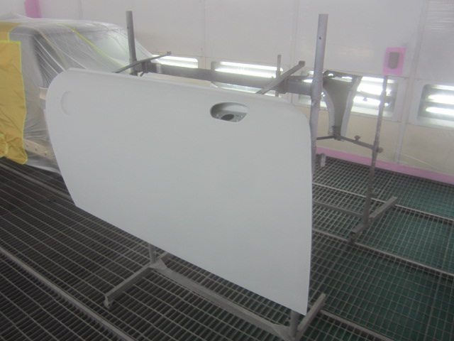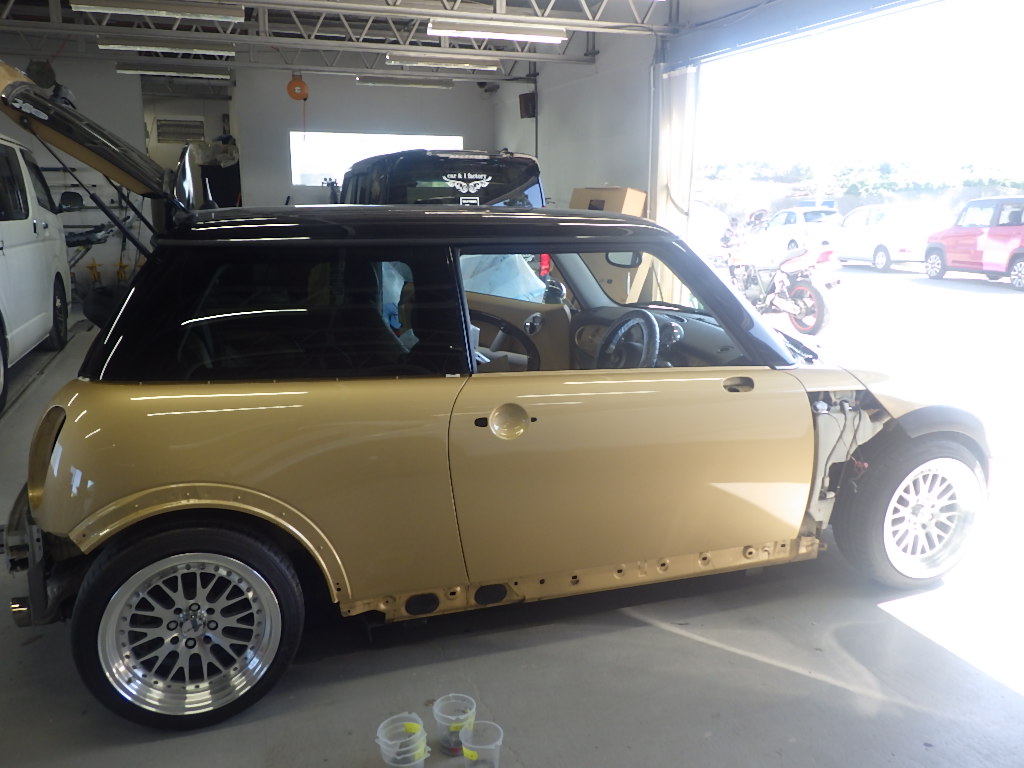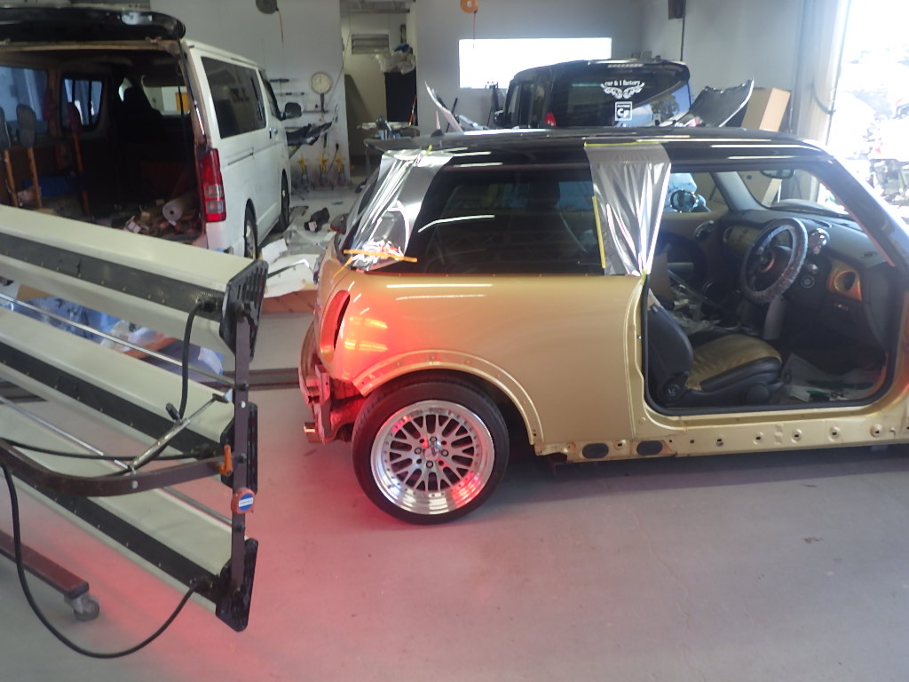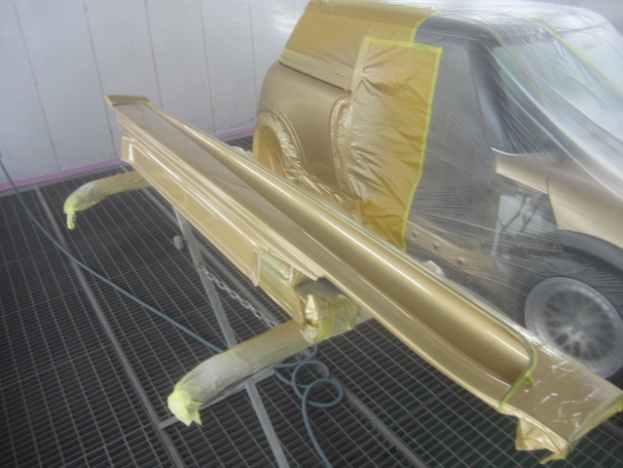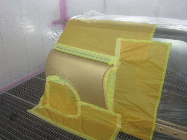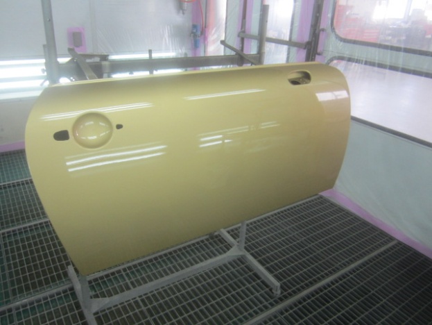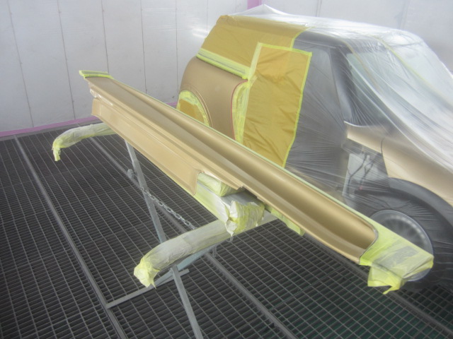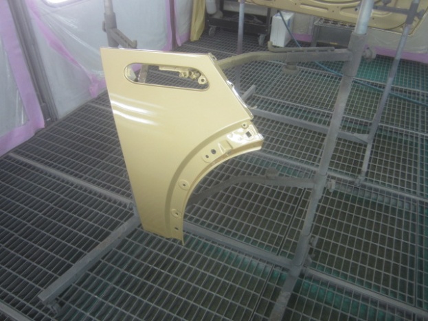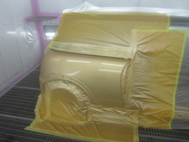 ベースコート(ゴールド)、トップコート(クリヤー)の順に塗装作業を行いました。