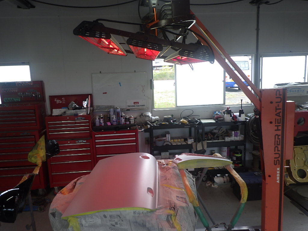 サフェーサーの塗装作業の後、遠赤外線を使用し、強制乾燥を行いました。