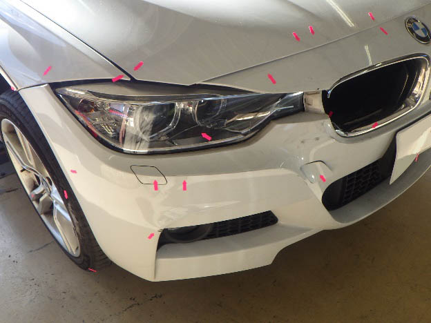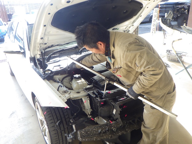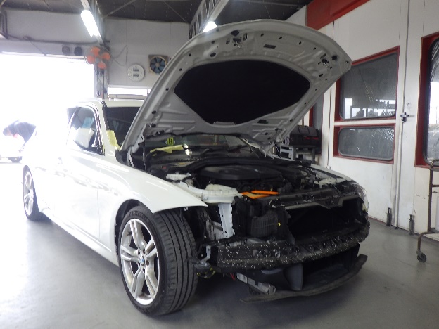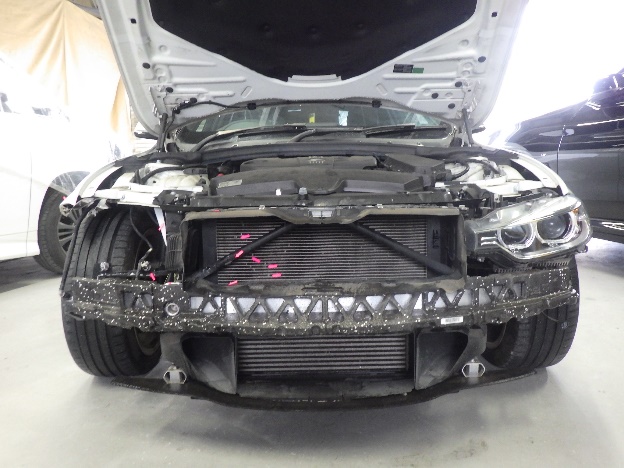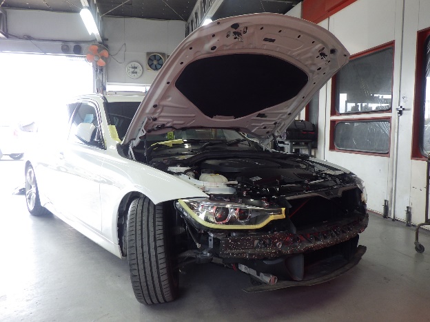 まず初めに、フロントバンパー内部の損傷状況確認の為、分解作業を行いました。