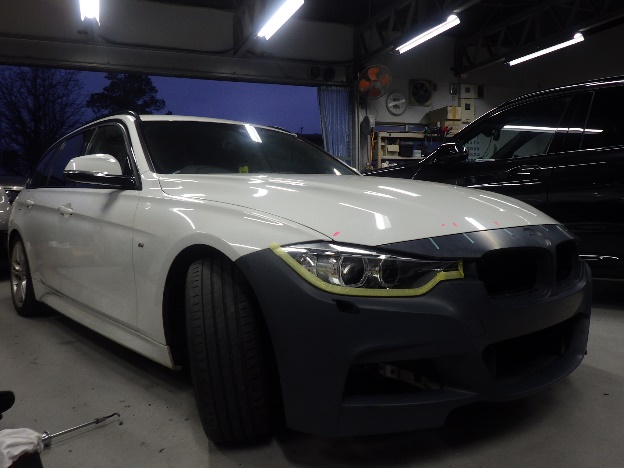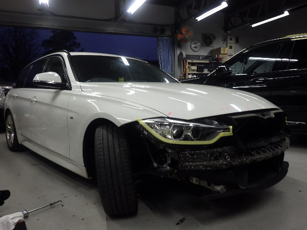 部品の交換作業の後、ヘッドライト → フロントバンパーの順に、