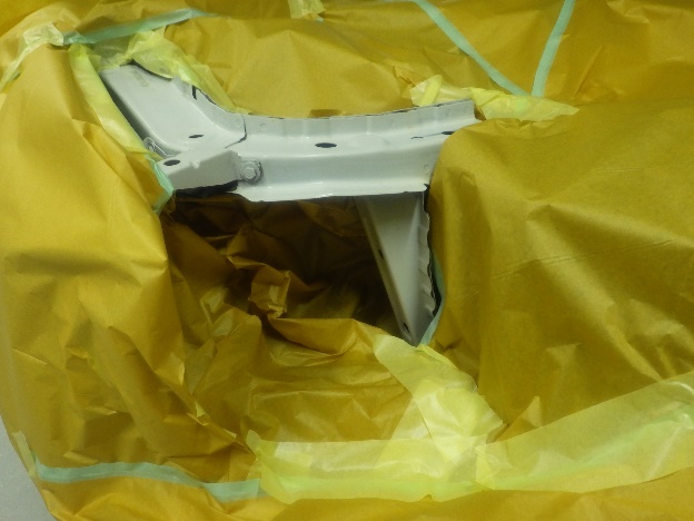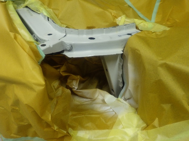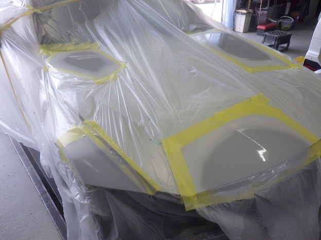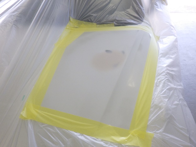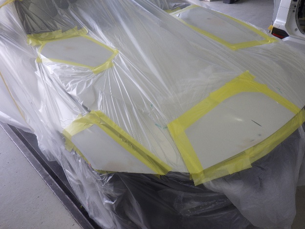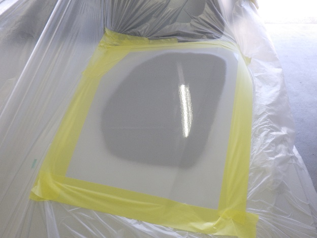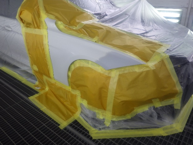 乾燥後、塗装準備(足付け、紙貼り、脱脂、エアブロー)を行い、