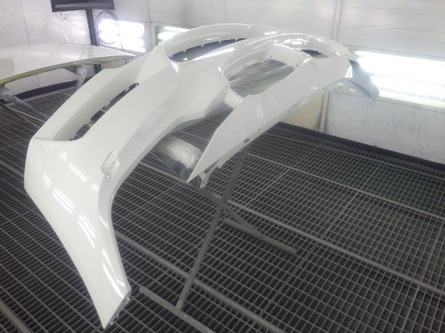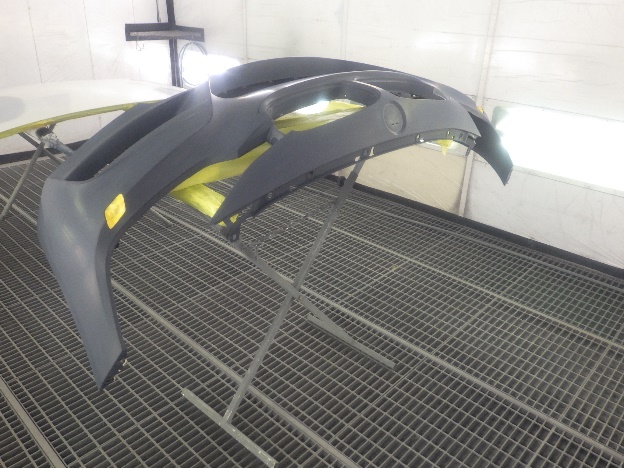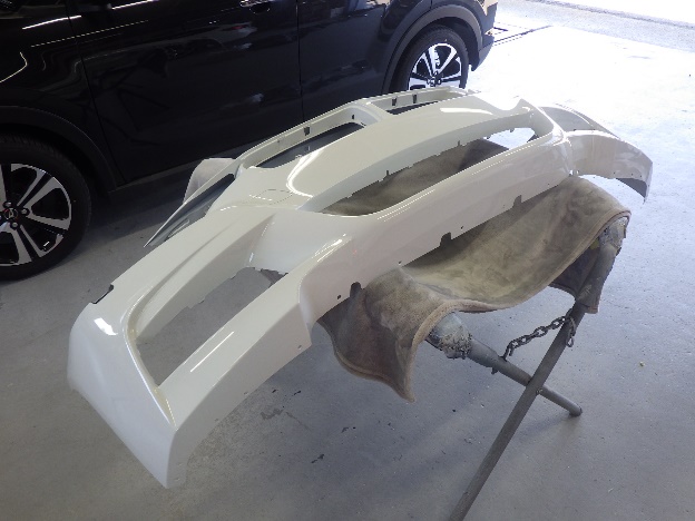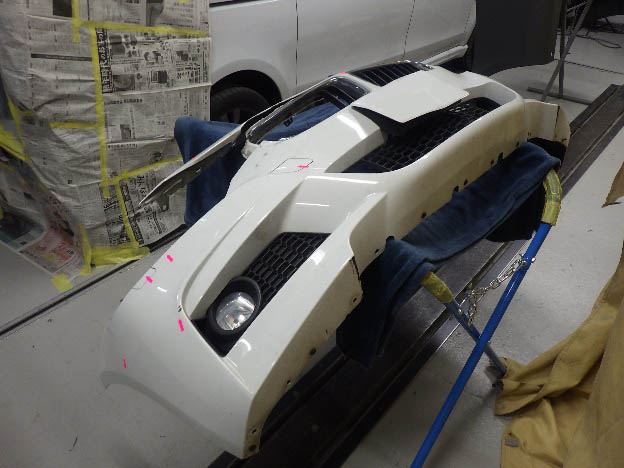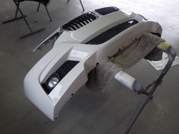 乾燥後、フロントバンパーへ構成部品を取り付け、組み立て作業を行いました。
