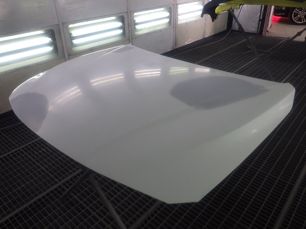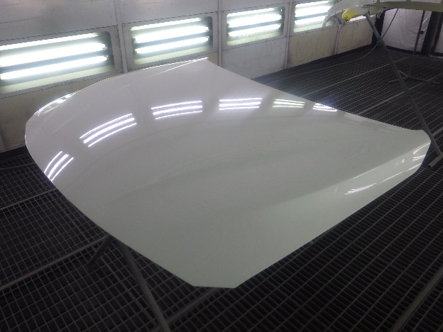 その後、ベースコート(白)、トップコート(クリヤー)の順に、塗装作業を行いました。