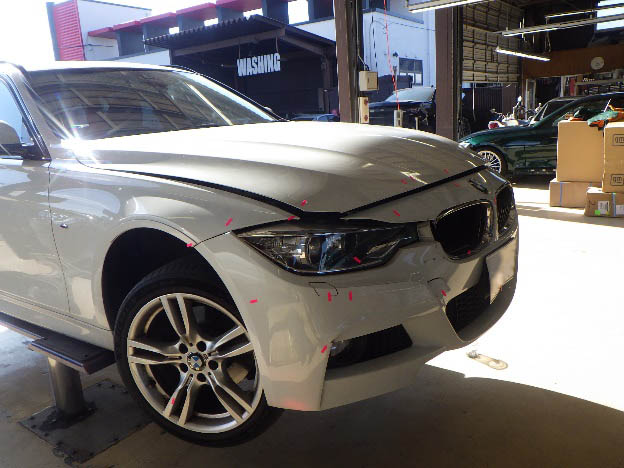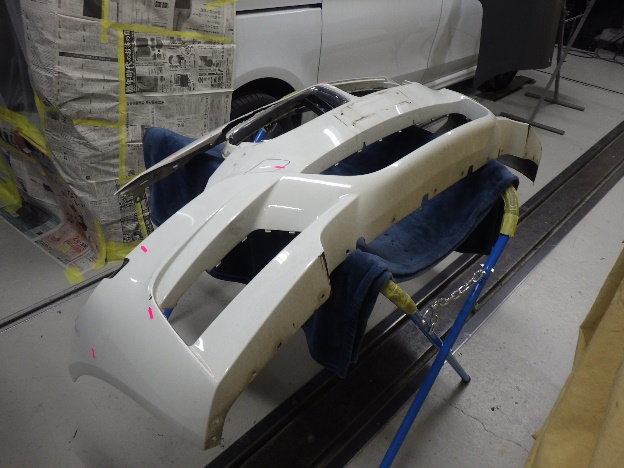 仮合わせ作業の後、フロントフェンダー、ボンネットの各箇所に、