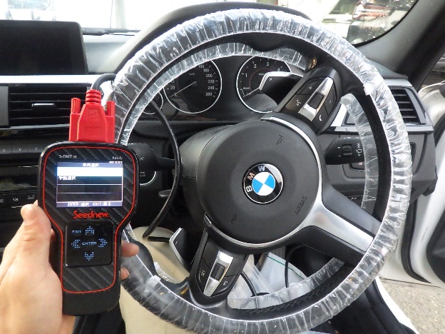 磨き作業の後、診断機を使用し、故障コードの消し込み作業、