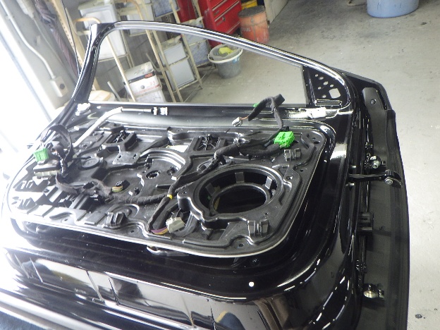 仮合せ作業の後、リアドアの板金作業を行いました。