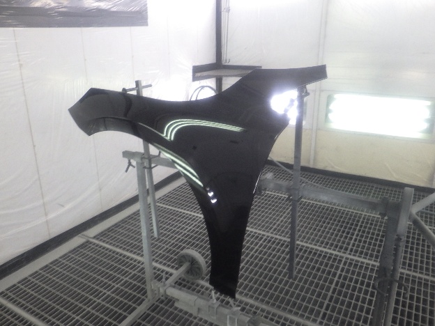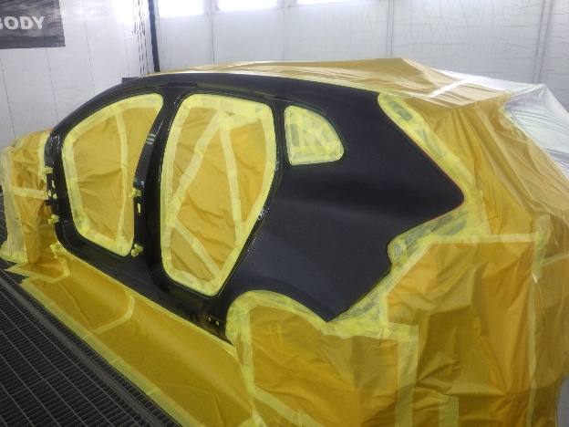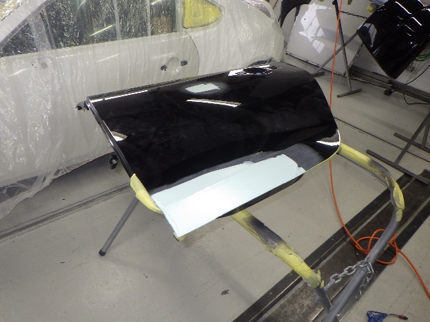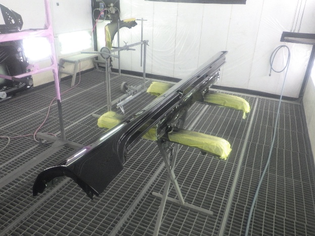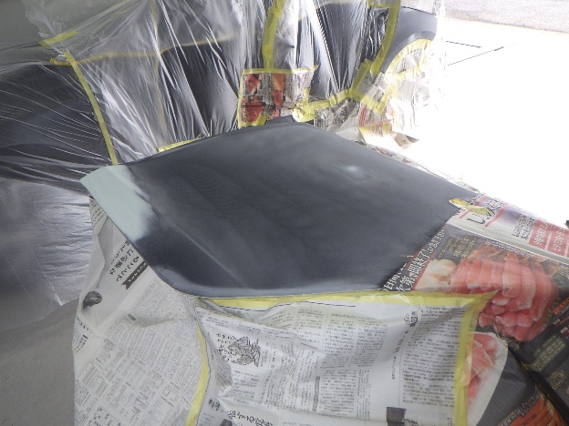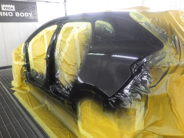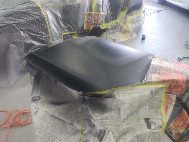 ベースコート(黒)、トップコート(クリアー)の順に塗装作業を行いました。