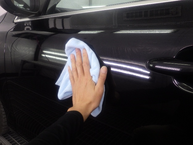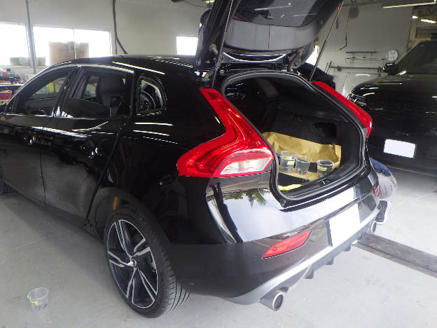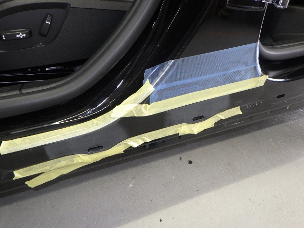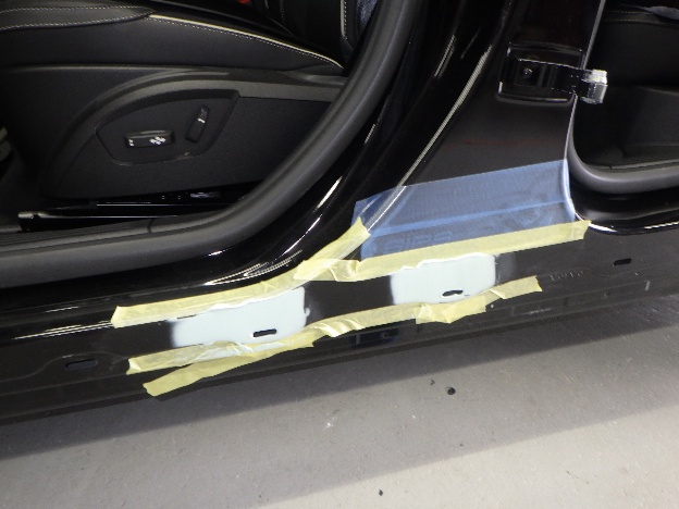 磨き作業の後、雨漏れ確認、ステップにラッピングの貼付け作業を行いました。