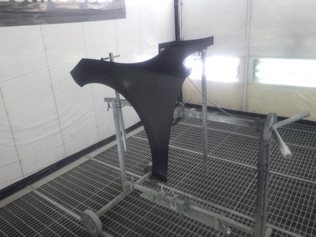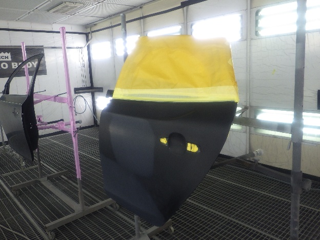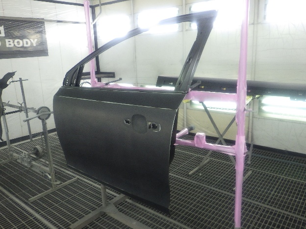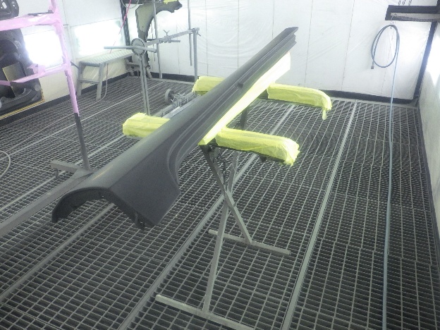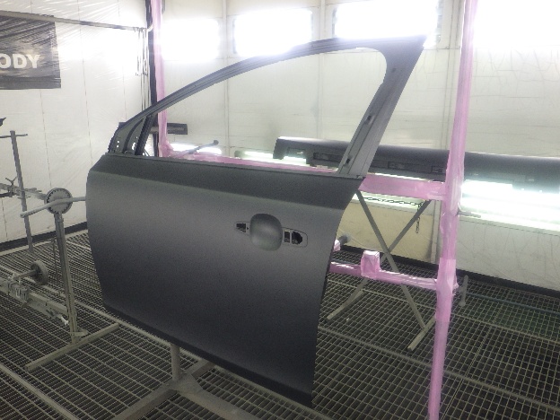 板金作業の後、パテの密着性向上の為、プライマーの塗装作業を行いました。