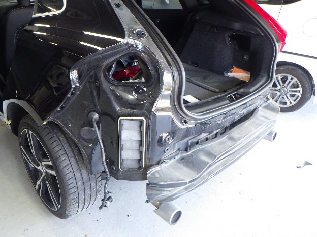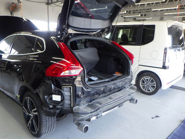 右リア回り損傷での入庫になります。 入庫確認作業の後、傷、汚れ防止の為、シートカバー、ハンドルカバー、 保護テープの貼り付け作業を行いました。 内部の損傷確認を…