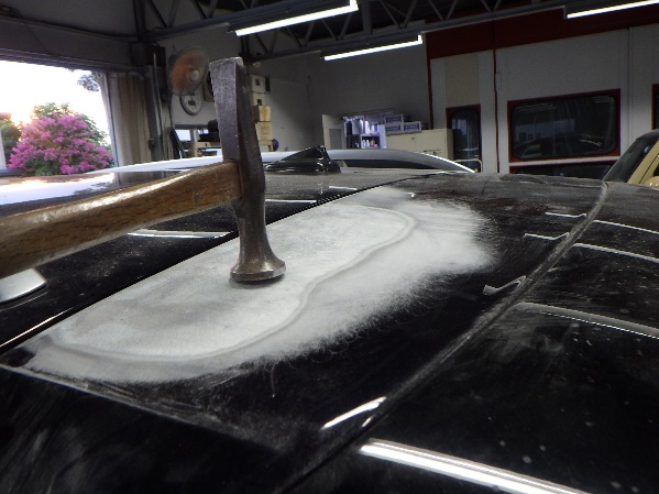 パテ修正前にパネルとパテの密着性向上の為にエポキシプライマーを塗布します。