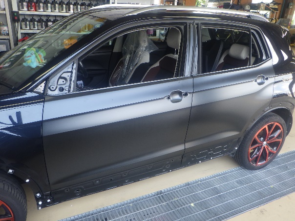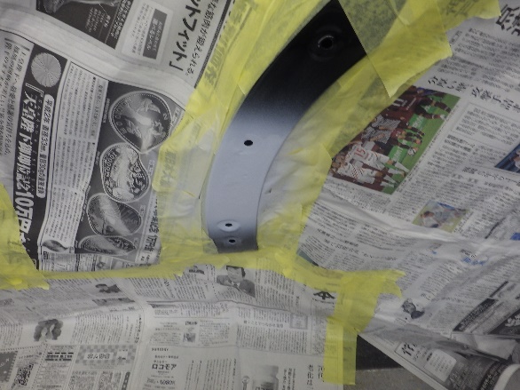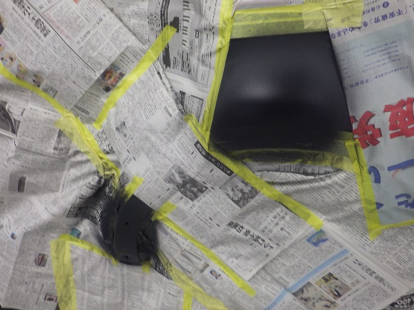 エアブローして塗装作業開始です。ベースコート(黒)、トップコート(クリヤー)の順に塗装作業を行いました。
