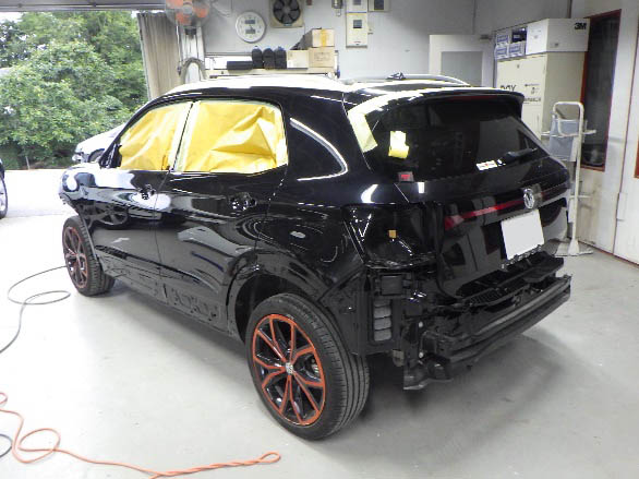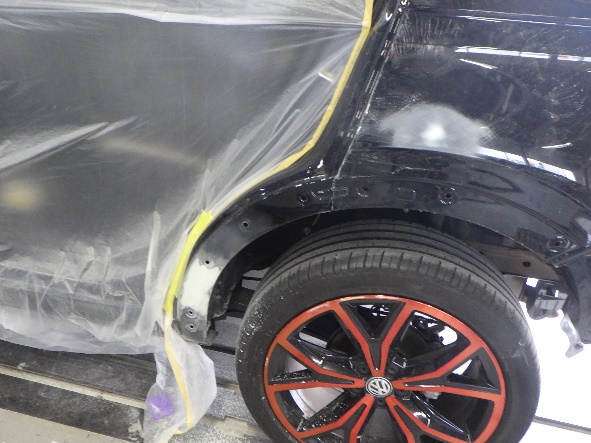 パテ修正作業の後、マスキング作業、脱脂作業、エアブローを行い、