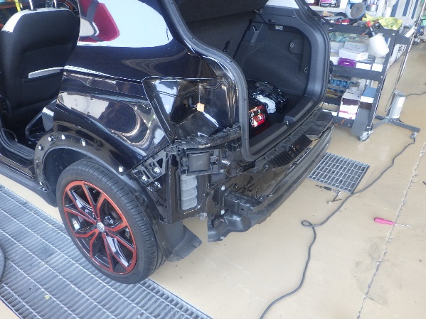 リヤゲートとリヤフェンダー損傷部分の鈑金作業を進めて行きました。