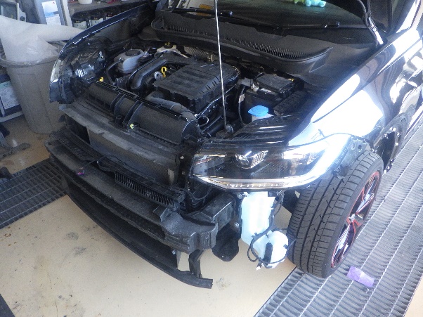 右フロント廻り損傷でのお預かりになります。 まず初めに、ホイールへの損傷があったので、足廻りの計測作業を行いました。 足廻りの計測を行ない、数値に問題が無い事を…