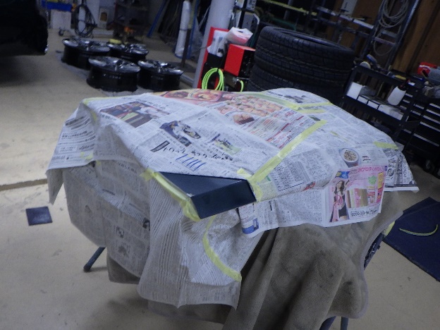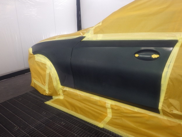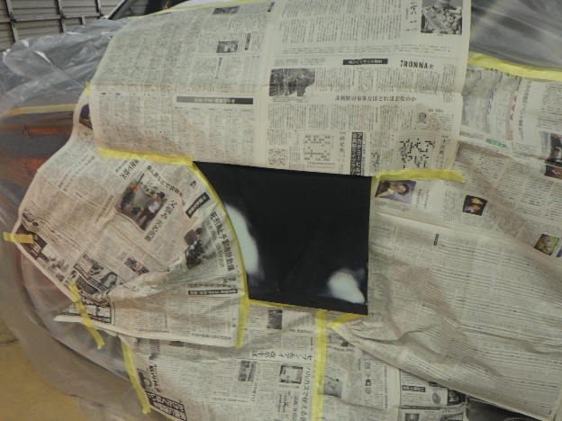 乾燥後、塗装準備(足付け、紙貼り、脱脂、エアブロー)を行い、