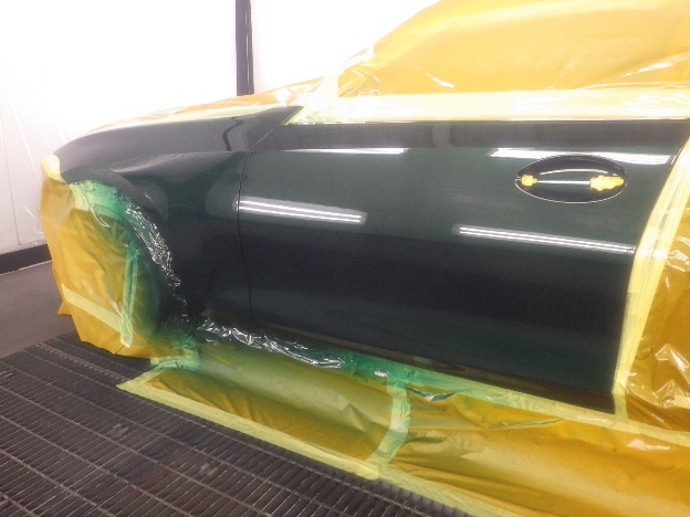 ベースコート(緑)、トップコート(クリヤー)の順に、塗装作業を行いました。