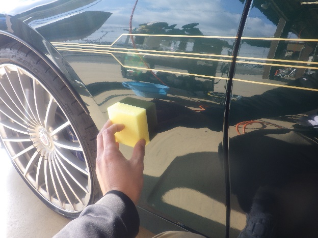 磨き作業の後、塗装を行った箇所へ、コーティングの再施工を行いました。
