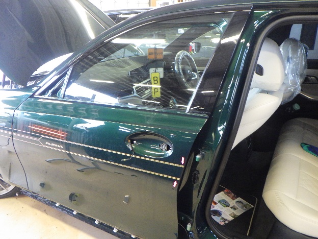 パテ付け作業の後、サイドステップ、フロントドアのキズ修正作業を行いました。