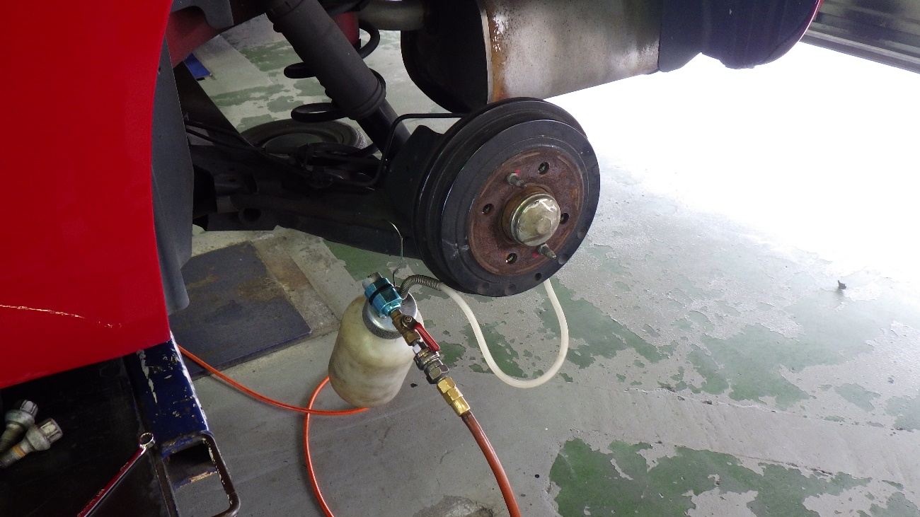 ブレーキオイルを負圧で抜き取っている最中です。