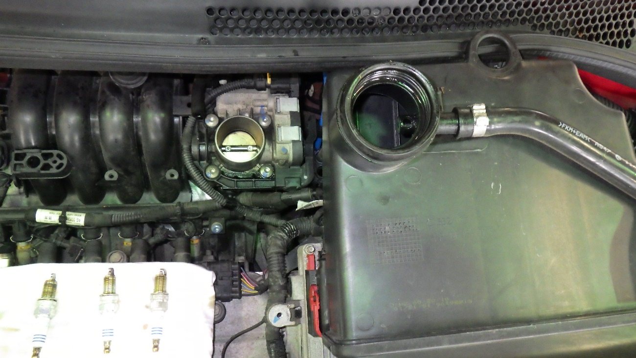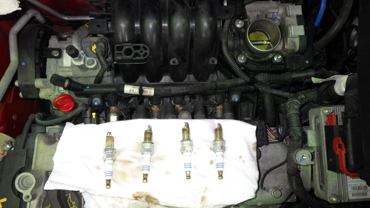 スパークプラグの点検及び、エアクリーナーケースの点検作業の様子です。