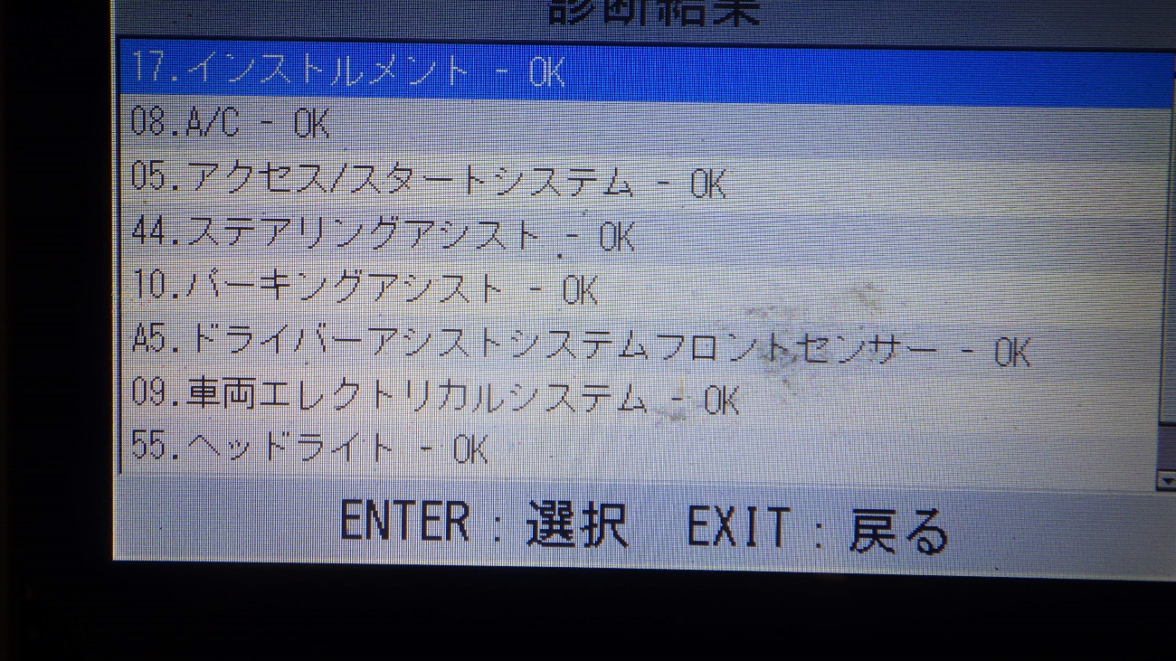 テスターにて故障コードの確認と、サービスのリセットを実施しています。