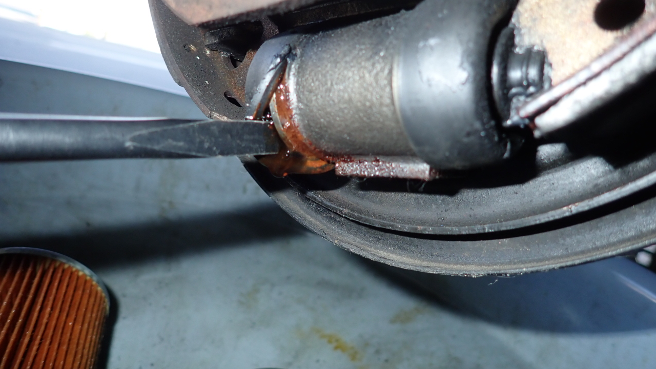 ホイールシリンダーより漏れが発生していましたので交換を実施しています。