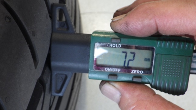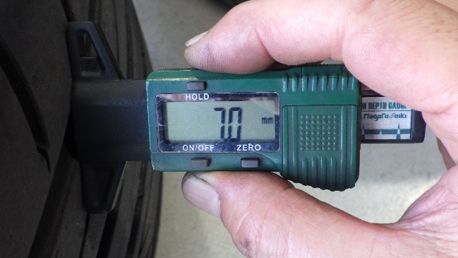 フロントタイヤの残量は約7.2mm、リヤタイヤの残量は約7.0mmです。