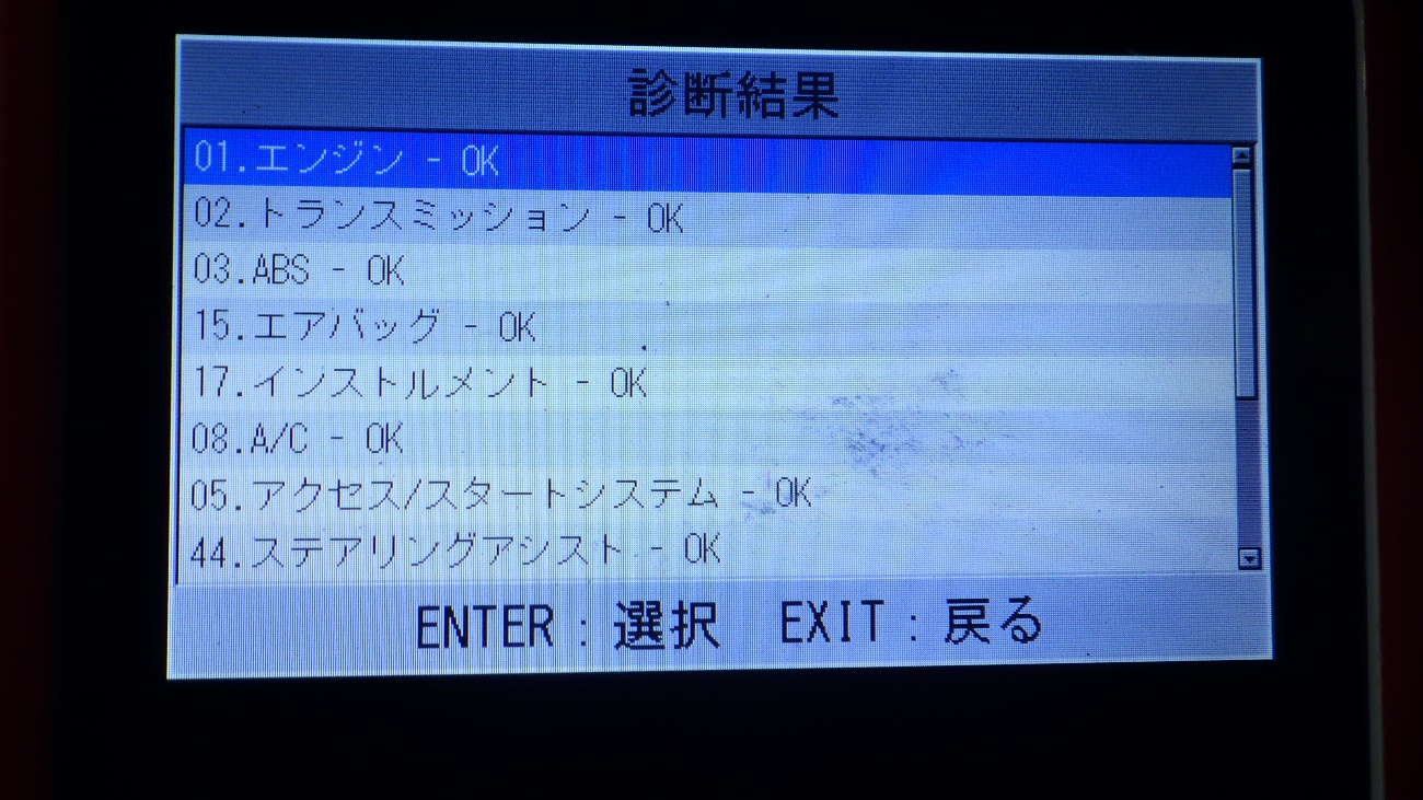 テスターにて故障コードの確認と、サービスのリセットを実施しています。