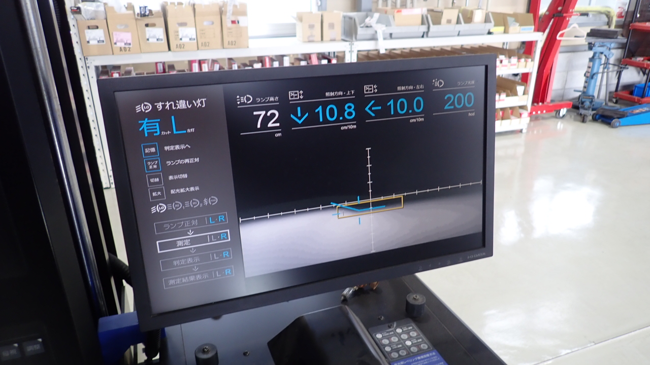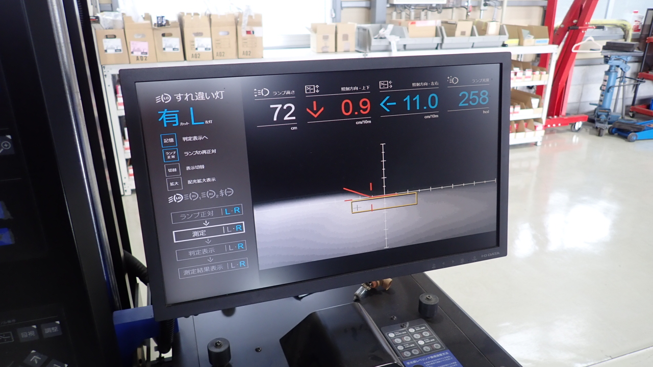 ヘッドライトの光軸調整を左右実施しています。