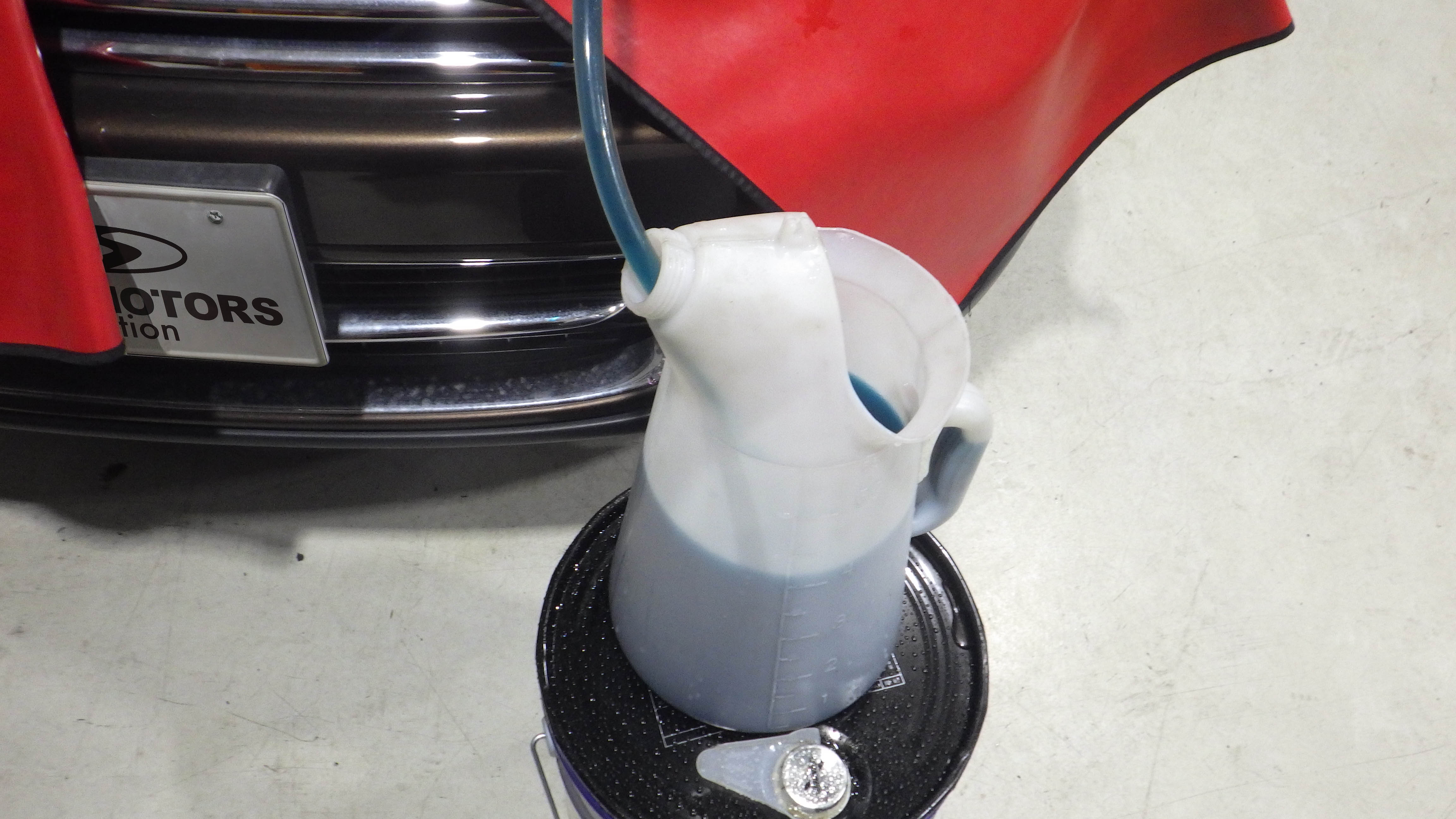 サーモスタットケース交換後、冷却水の交換を実施しました。