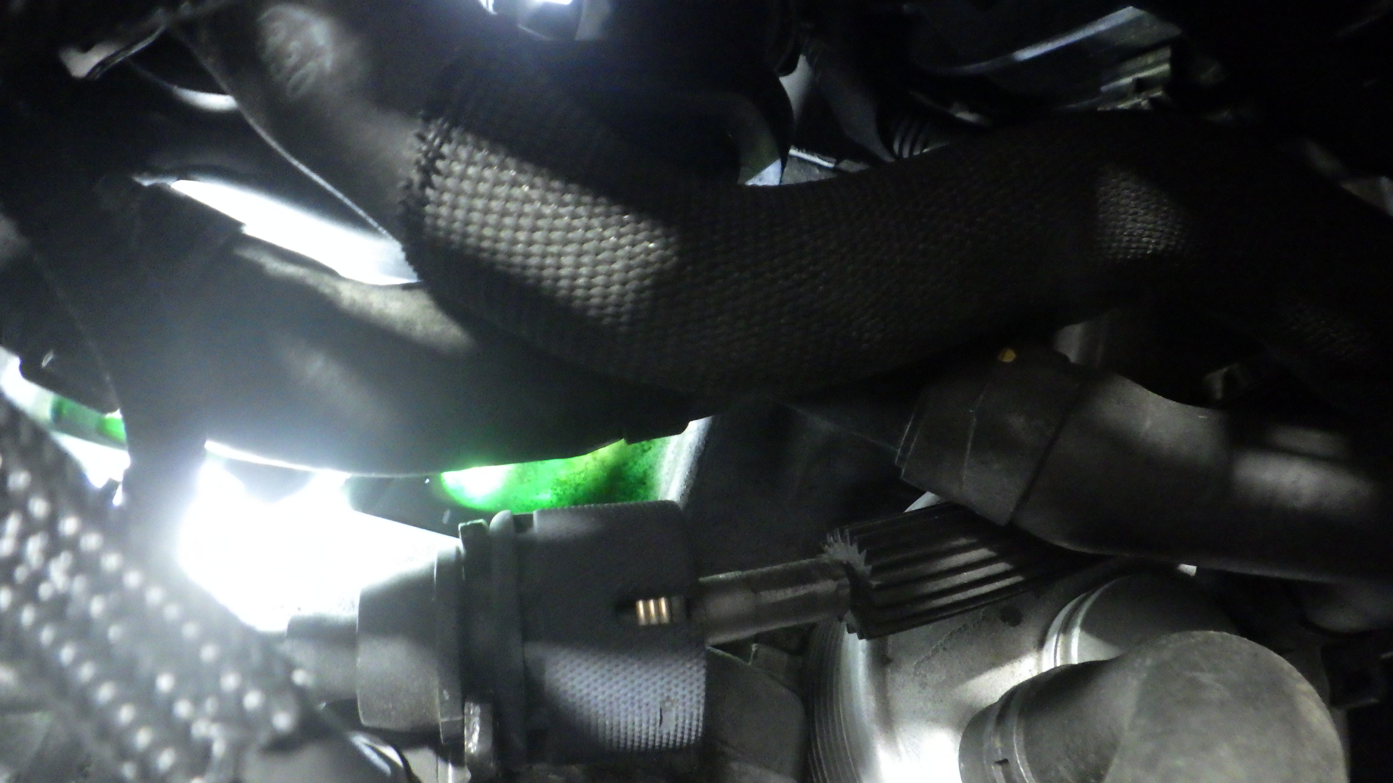 サーモスタットケースの丸印付近からの漏れが確認できました。