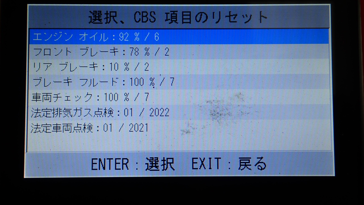 テスターにて故障コードの確認と、サービスのリセットを実施しています。