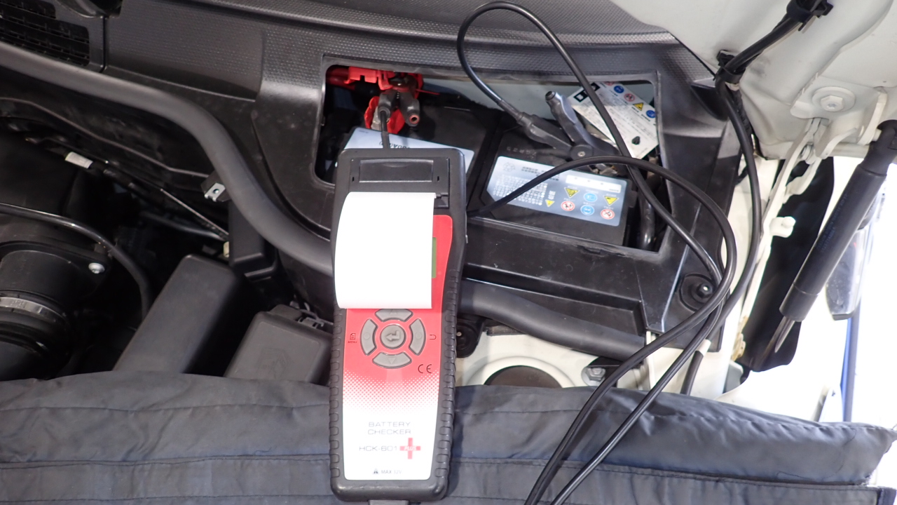 テスターにてバッテリーの点検を実施しています。